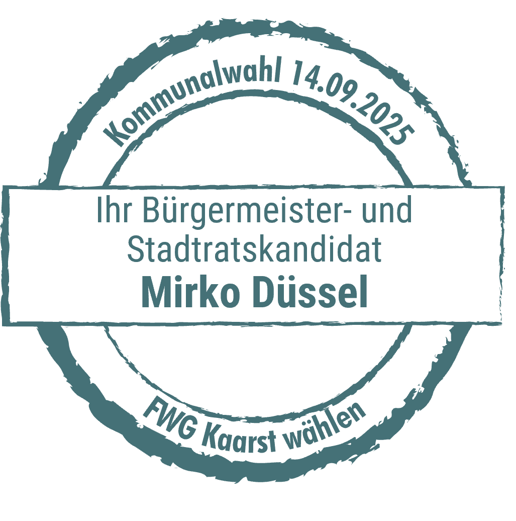 Ich bin Mirko Düssel, Ihr Kandidat für das Amt des Bürgermeisters und für den Stadtrat in Kaarst. Gemeinsam mit Ihnen möchte ich unsere Stadt transparenter, effizienter und bürgernäher gestalten. Ich bin 58 Jahre alt, Familienvater, Unternehmer und ein Kaarster mit Herz. Ich trete an, weil ich davon überzeugt bin, dass wir in unserer Stadt mehr erreichen können – wenn wir zuhören, gemeinsam Ideen entwickeln und mutig umsetzen.